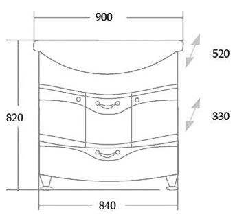 - тумба под раковину: 2 выдвижных ящика, 2 распашных дверцы, 4 ручек (хром), 4 ножки, комплект доводчиков.