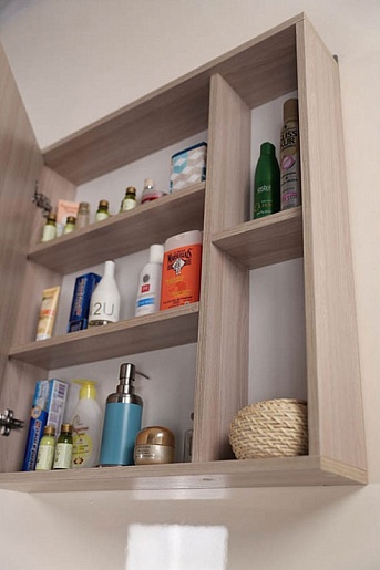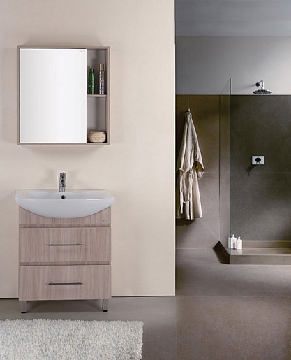 Комплектация: зеркальный шкаф для ванной с влагостойким зеркальным полотном. Шкаф с распашной дверцей и открытыми полками. Ориентация универсальная.