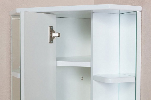 Описание: зеркальный подвесной шкаф с влагостойким зеркальным полотном и с боковыми полочками. Внутренние отделение с полочками. Фурнитура металл хром. Фасад MDF и зеркало амальгама, корпус ЛДСП глянец.