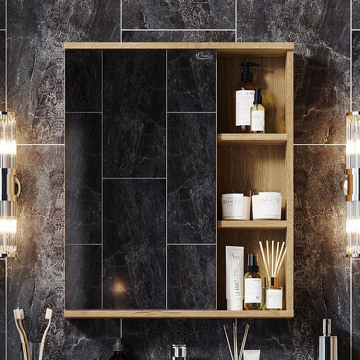 - 1 зеркальная дверца, 3 открытые полки.