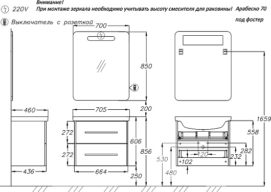 Комплектация: тумба, раковина, зеркало.