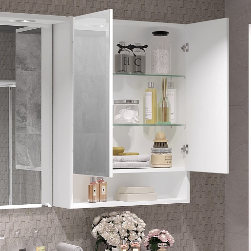 Комплектация: тумба, раковина, зеркало, зеркальный шкаф.