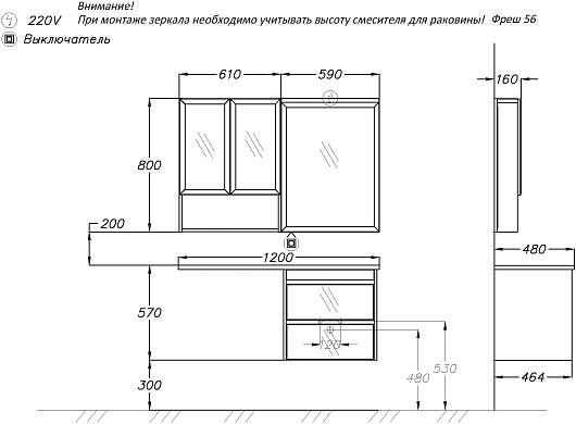 - Материал корпуса/фасада: ЛДСП / ЛДСП, зеркало.