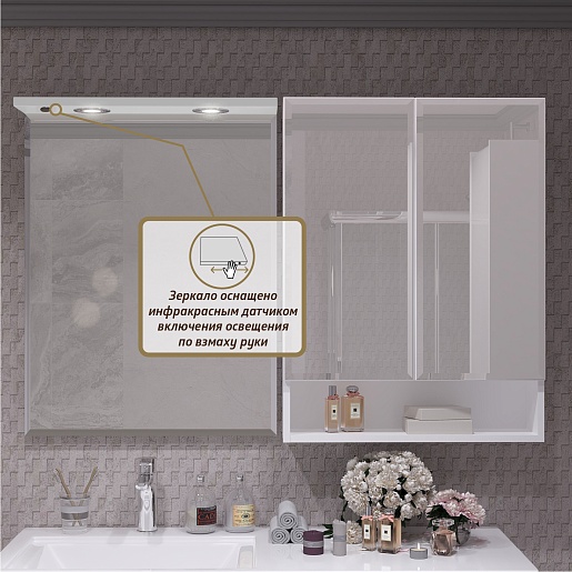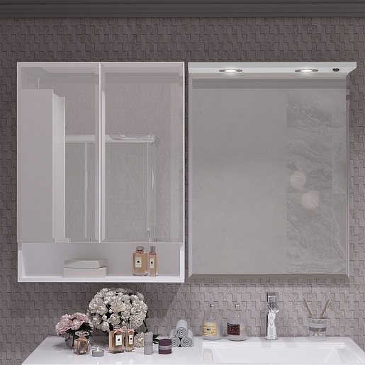 Комплектация: тумба, раковина, зеркало, зеркальный шкаф.