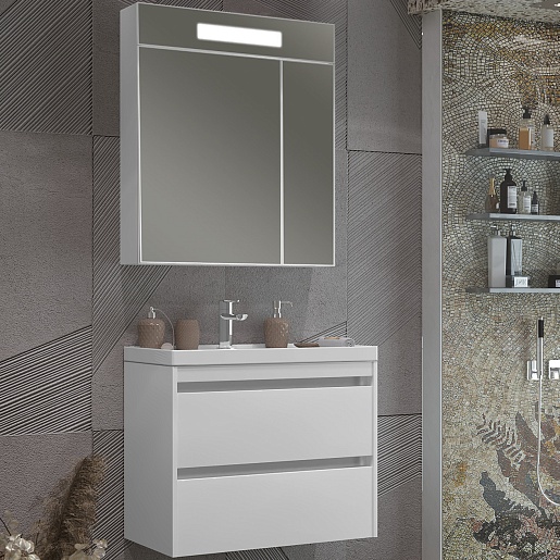 Комплектация: тумба, раковина, зеркальный шкаф.
