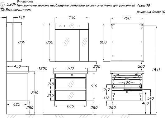 - Материал корпуса/фасада: ЛДСП / ЛДСП, зеркало.