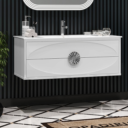 Тумба под раковину Ибица 120 подвесная белая/хром