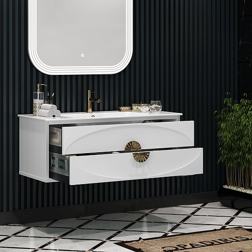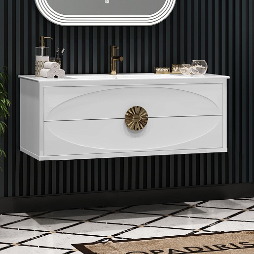 Тумба под раковину Ибица 120 подвесная белая/золото