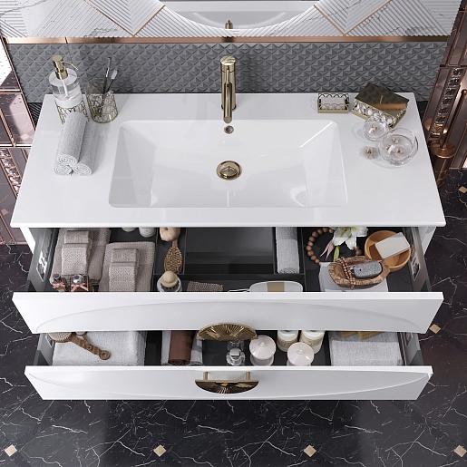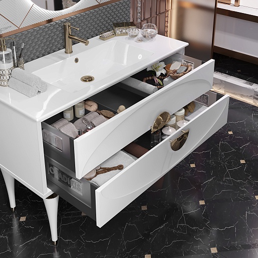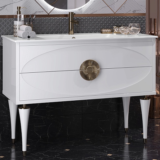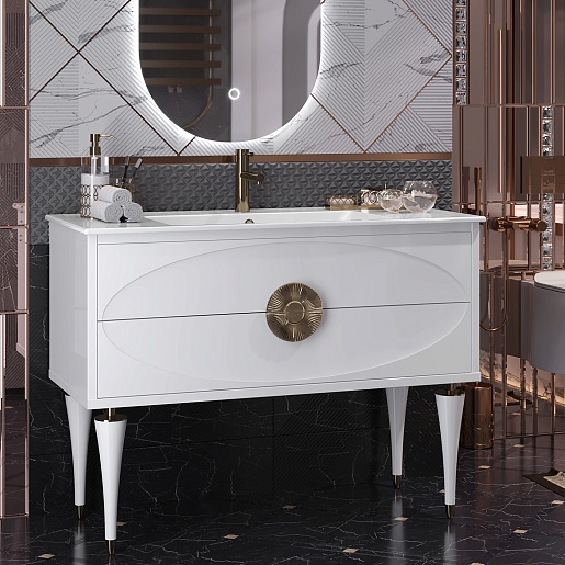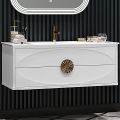 Тумба под раковину Ибица 120 подвесная белая/золото