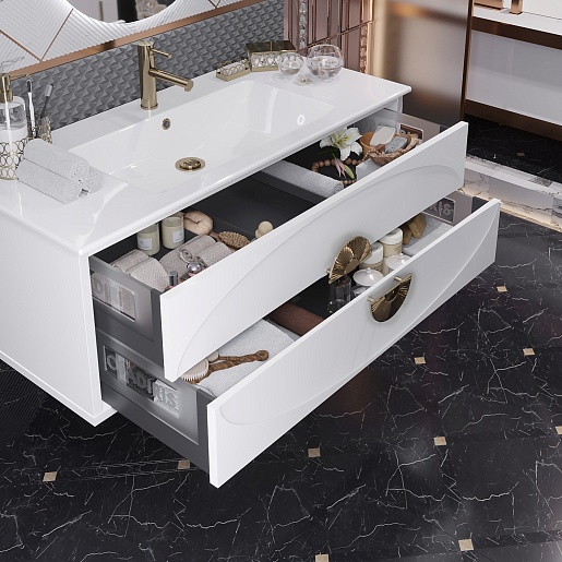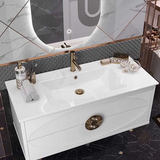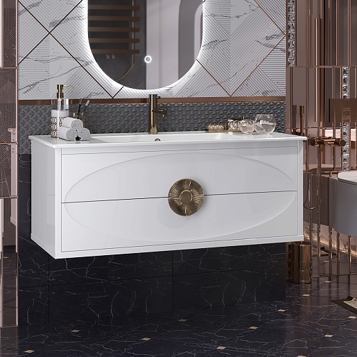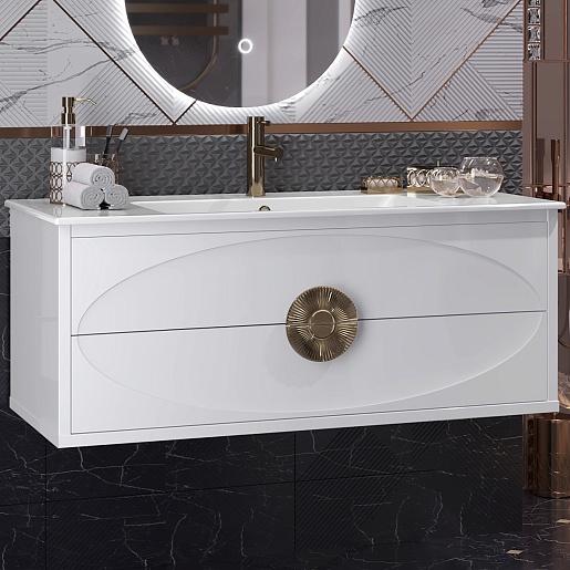 Тумба под раковину Ибица 120 подвесная белая/золото