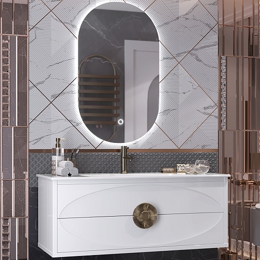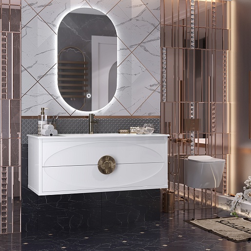 Opadiris Мебель для ванной Ибица 120 с овальным зеркалом подвесная белая/золото