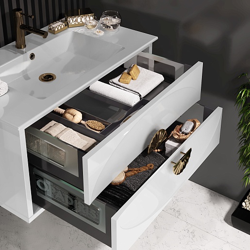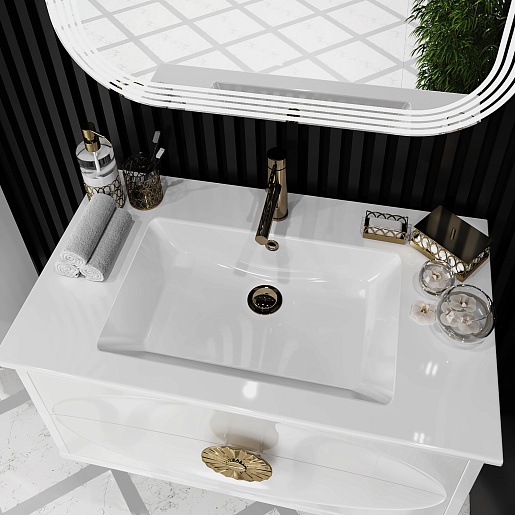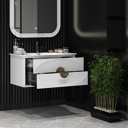 Тумба под раковину Ибица 90 подвесная белая/золото
