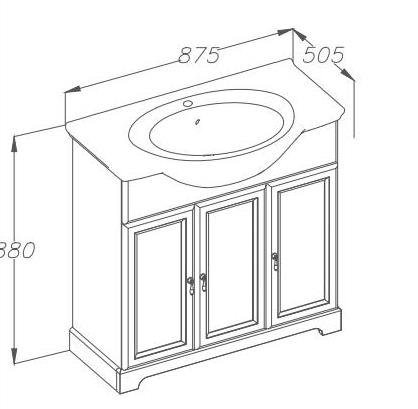 Описание: тумба с тремя распашными дверцами выполнена из массива бука. В комплект входит керамическая раковина "Mia 85" .