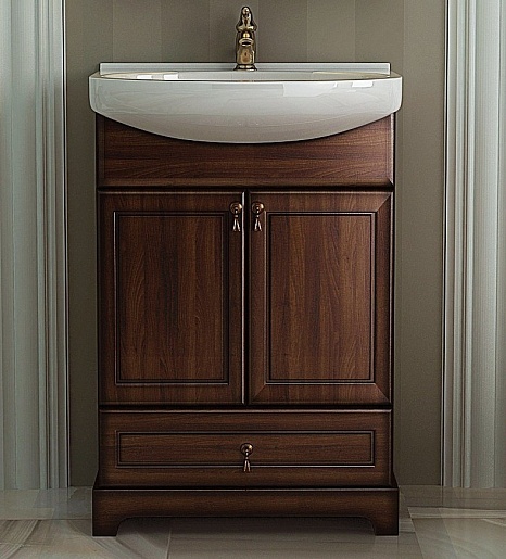 Описание: тумба с двумя распашными дверцами и ящиком, выполнена из массива бука. В комплект входит керамическая раковина "Лагуна 65" .