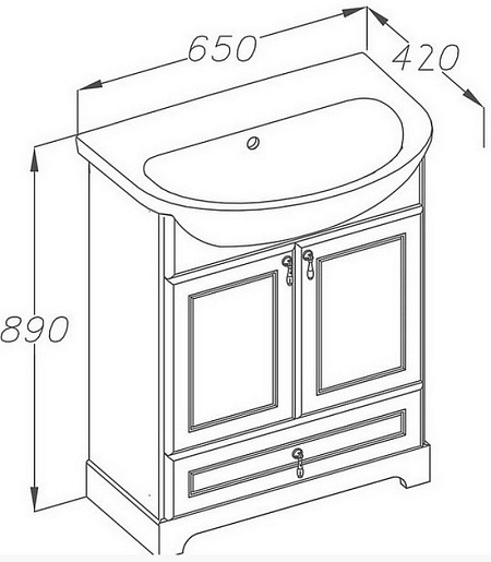 Описание: тумба с двумя распашными дверцами и ящиком, выполнена из массива бука. В комплект входит керамическая раковина "Лагуна 65" .