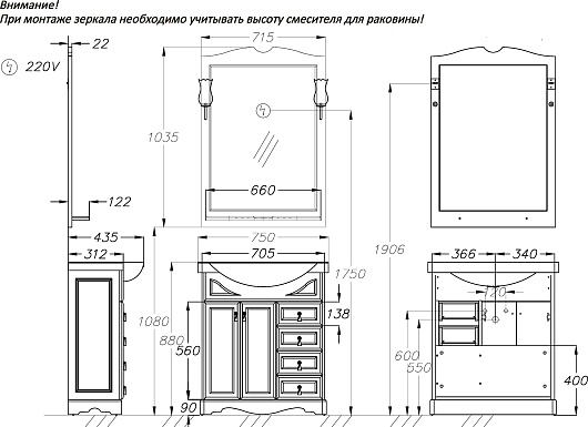 Комплектация: тумба, раковина, зеркало.