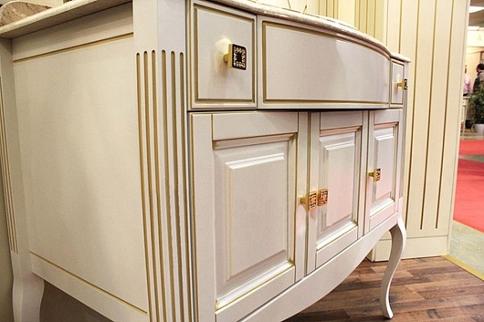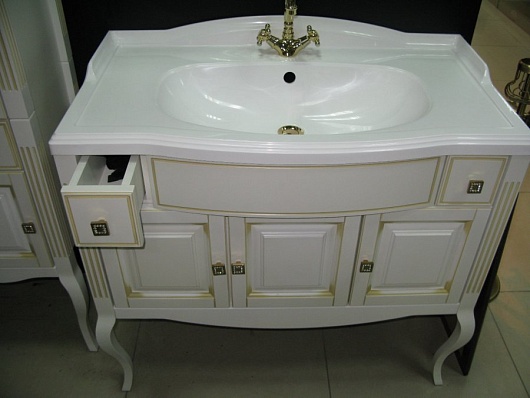 Тумба под раковину Лаура 100 белая с бежевой патиной
