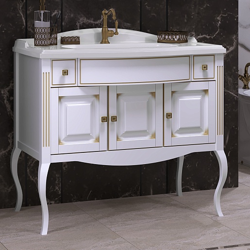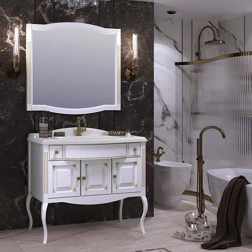 Opadiris Мебель для ванной Лаура 100 белая с бежевой патиной