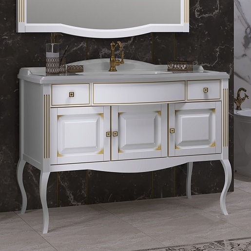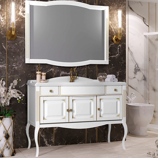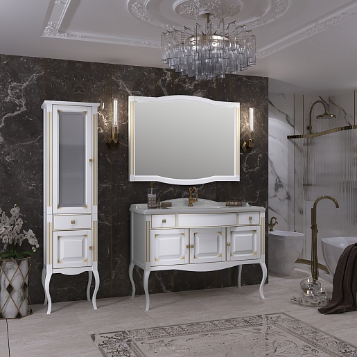 Opadiris Мебель для ванной Лаура 120 белая с бежевой патиной