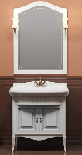 Описание: влагостойкое зеркальное полотно в классической раме из массива бука. Светильниками в комплект не входят!