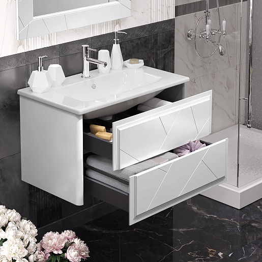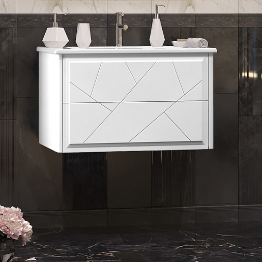 Тумба под раковину Луиджи 80 подвесная белая матовая