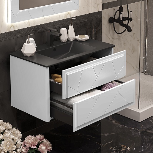 Тумба под раковину Луиджи 90 подвесная белая матовая