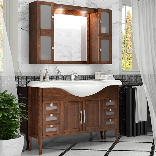 Комплектация: тумба, раковина, зеркало, козырек, шкафчик для зеркала (2 шт.).