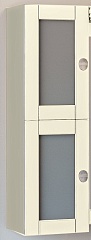 Описание: подвесной шкафчик с распашными дверцами и полочками. Фасады декорированы вставками из матового стекла.
