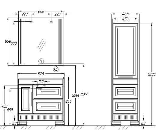 Описание: напольная тумба с двумя выдвижными ящиками и распашным фасадом. В комплект входит раковина "Прима 80".
