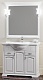 Описание: влагостойкое зеркальное полотно в классической раме из массива бука, с двумя изящными светильниками в матовых плафонах и полкой.