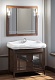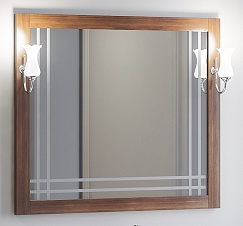 Описание: влагостойкое зеркальное полотно в классической раме из массива бука, тонированной в темный цвет. В комплект входят светильники Рустика.