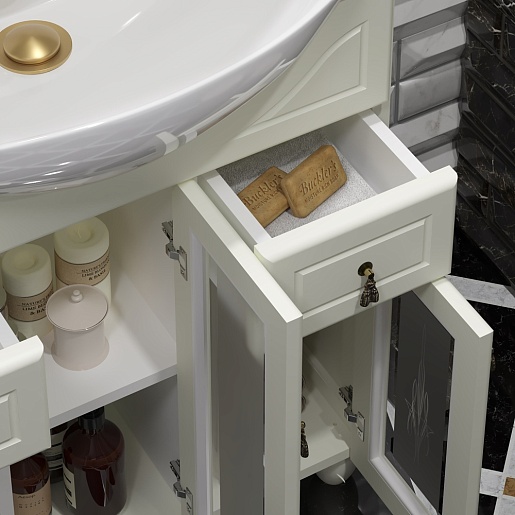 Тумба под раковину Тибет 75 слоновая кость, с художественным стеклом