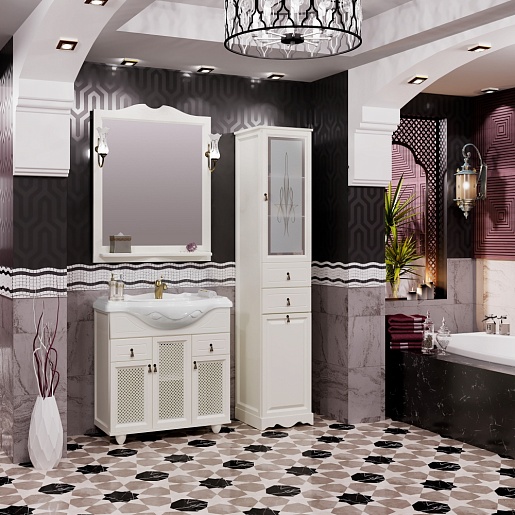Opadiris Мебель для ванной Тибет 85 с декоративной решеткой, слоновая кость