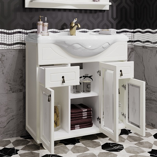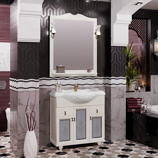 Opadiris Мебель для ванной Тибет 85 с художественным стеклом, слоновая кость