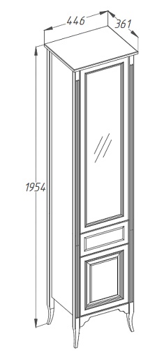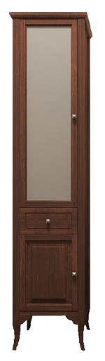 Описание: напольный пенал для ванной с верхней распашной дверцей, выдвижным ящиком в центре и нижним распашным фасадом. Внутренне пространство верхнего отделения оснащено двумя полками. Пенал выполнен из массива бука.