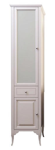 Описание: напольный пенал для ванной с верхней распашной дверцей, выдвижным ящиком в центре и нижним распашным фасадом. Внутренне пространство верхнего отделения оснащено двумя полками. Пенал выполнен из массива бука.
