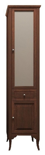 Описание: напольный пенал для ванной с верхней распашной дверцей, выдвижным ящиком в центре и нижним распашным фасадом. Внутренне пространство верхнего отделения оснащено двумя полками. Пенал выполнен из массива бука.