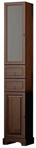Описание: пенал для ванной с выдвижными ящиками и с распашными фасадами, декорирован вставкой из стекла. Внутреннее пространство оснащено полками. Пенал выполнен из массива бука.