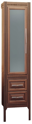 Описание: пенал для ванной с выдвижными ящиками и с распашным фасадом, декорированным вставкой из стекла. Внутреннее пространство оснащено полками. Пенал выполнен из массива бука.