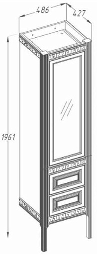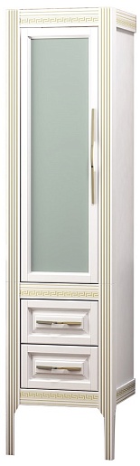 Описание: пенал для ванной с выдвижными ящиками и с распашным фасадом, декорированным вставкой из стекла. Внутреннее пространство оснащено полками. Пенал выполнен из массива бука.