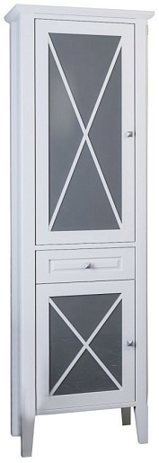 Описание: напольный пенал для ванной с распашными дверцами и выдвижным ящиком. Внутренне пространство оборудовано полками. Пенал выполнен из массива бука и декорирован вставками из стекла.