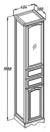 Описание: напольный пенал с двумя выдвижными ящиками и распашными дверцами, декорированной полупрозрачным стеклом. Пенал выполнен из массива бука. Верхнее отделение оснащено двумя полками для удобства организации хранения.