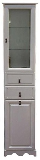 Описание: напольный пенал для ванной с верхней распашной дверцей, двумя выдвижными ящиками в центре и нижним фасадом. Внутренне пространство верхнего отделения оснащено двумя полками. Пенал выполнен из массива бука.