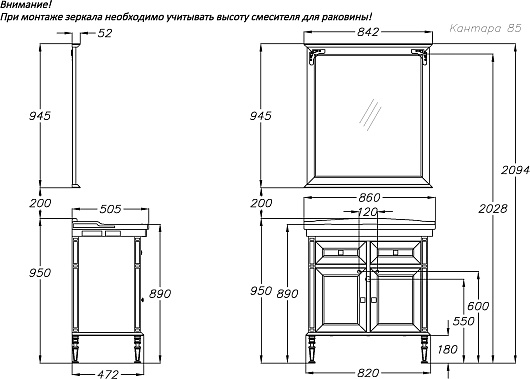 - 2 выдвижных ящика, 2 распашные дверцы.