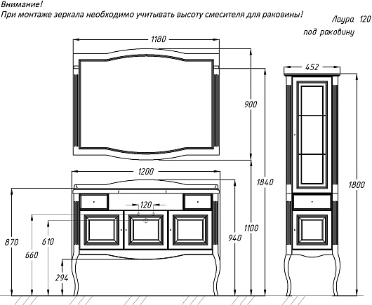 - 2 выдвижных ящичка, 3 распашные дверцы.