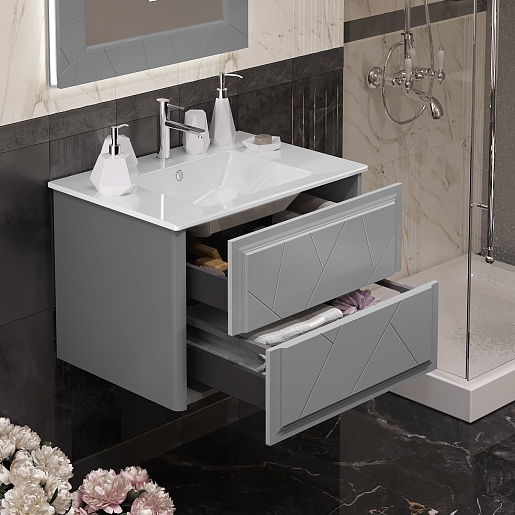 Opadiris Тумба под раковину Луиджи 70 подвесная серая матовая
