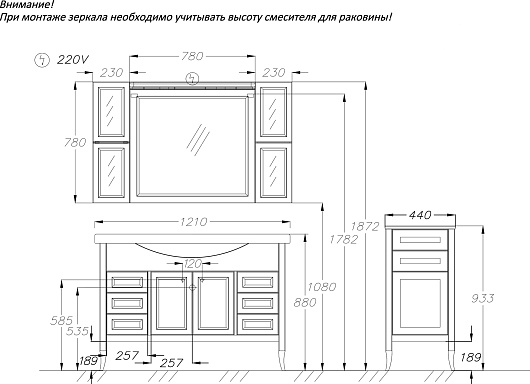 - 2 дверцы, 6 выдвижных ящиков.