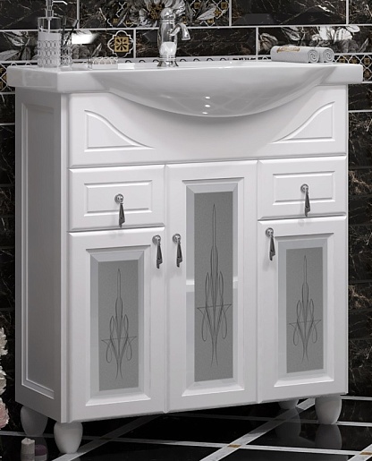 Opadiris Тумба под раковину Тибет 75 белая, с художественным стеклом