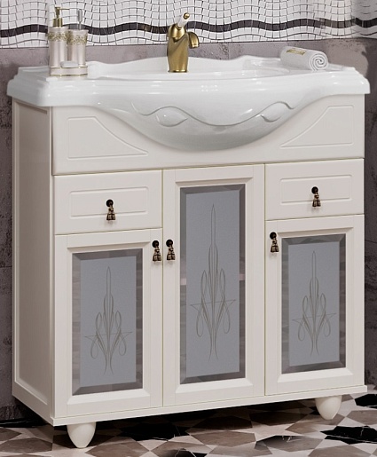 Opadiris Тумба под раковину Тибет 85 с художественным стеклом, слоновая кость