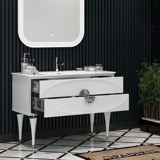Тумба под раковину Ибица 120 подвесная белая/хром